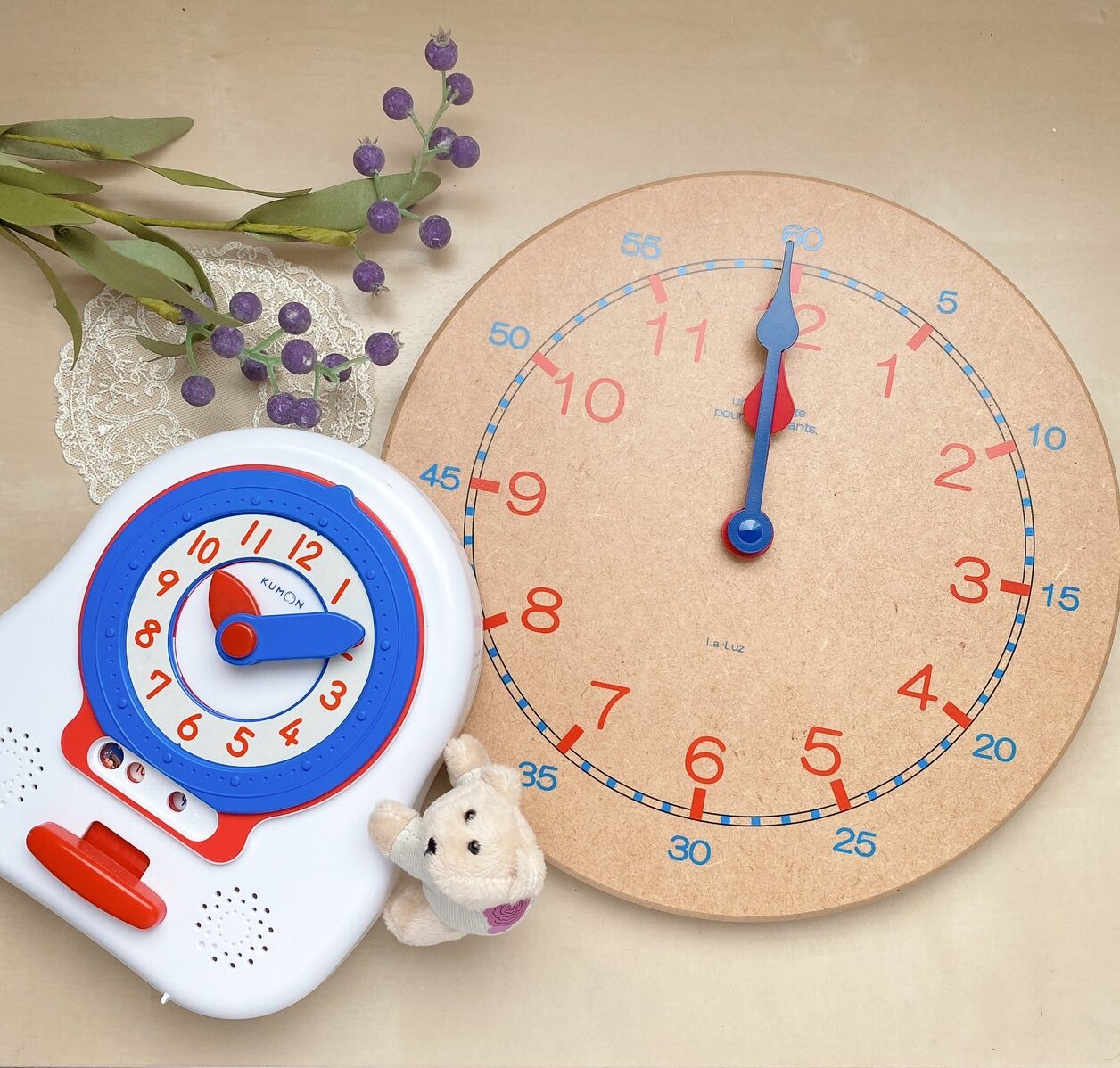 小学校1年生のはじめから、算数で「時計」の練習が始まることを考えると、3~5歳の間にある程度、時計に触れる機会を作っておく、または読めるようになっておくと安心ですね。