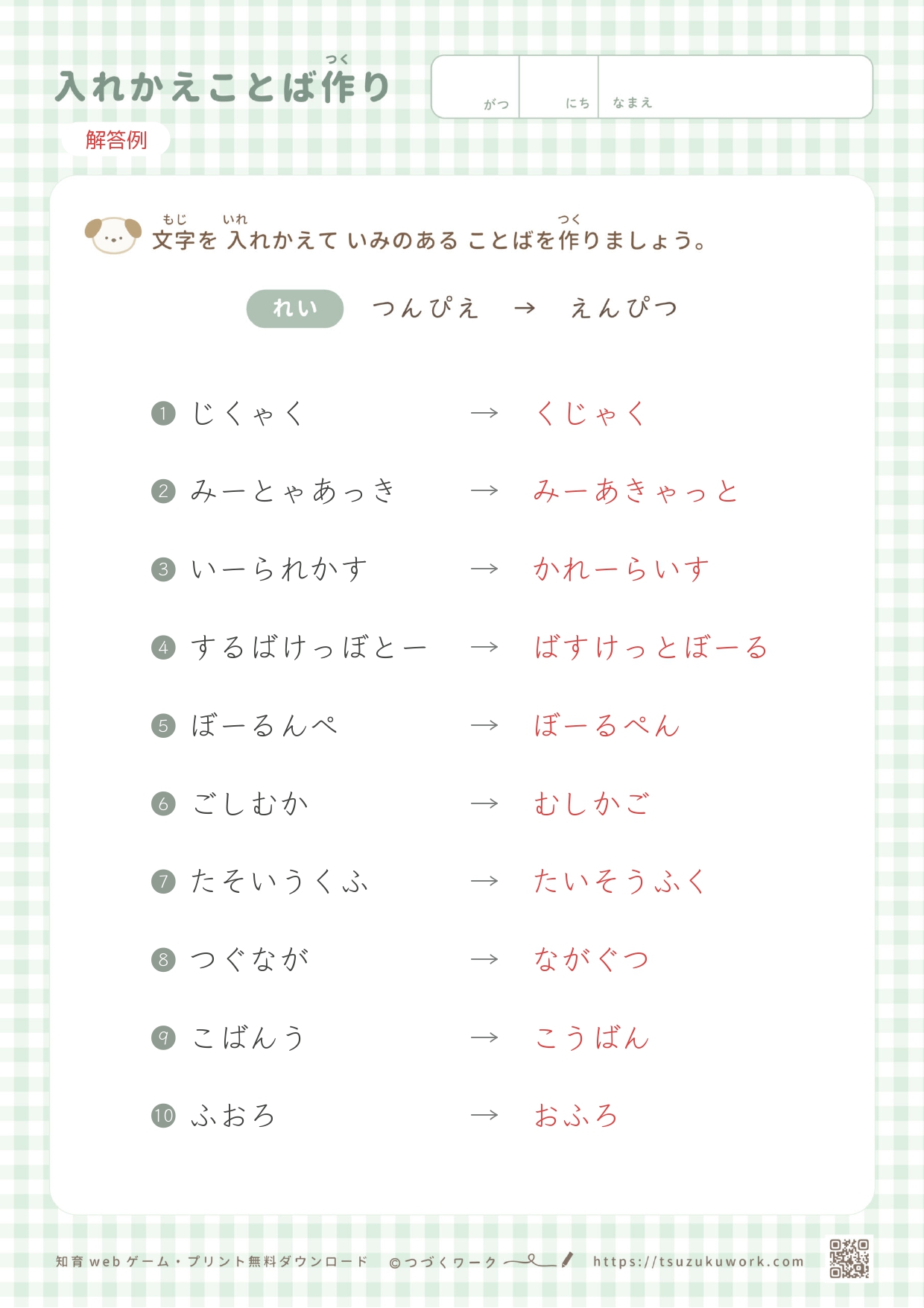 入れかえことば作り(カスタム作成)
